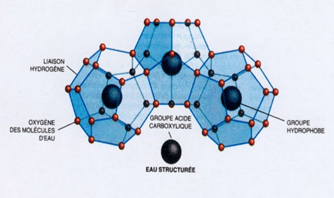 Lorsque le milieu interstitiel est stable sans aucun apport énergétique dans le milieu, les molécules d’eau peuvent se rassembler grâce aux liaisons hydrogène qu’elles peuvent former entre elles autour des pôles hydrophobes des fibres. Ce regroupement est nommé cage à eau. Les protéines biopolymères contenues dans le milieu ne peuvent que se replier avec un certain temps de latence sous l’action des milliards de cages à eaux formées par les molécules d’eau qui repoussent les pôles hydrophobes de ces protéines.