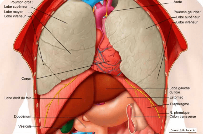 Il se trouve que le diaphragme est entouré des presque tous les organes vitaux: coeur, foie, vésicule biliaire, estomac, poumons et un peu plus loin les reins et le pancréas. Ainsi, sa mobilisation va permettre un véritable massage de ces organes, leur assurant une bonne mobilité et ainsi une bonne santé! Cela est notamment bien décrit en Médecine Traditionnelle Chinoise. On parle de « respiration de longue vie ».